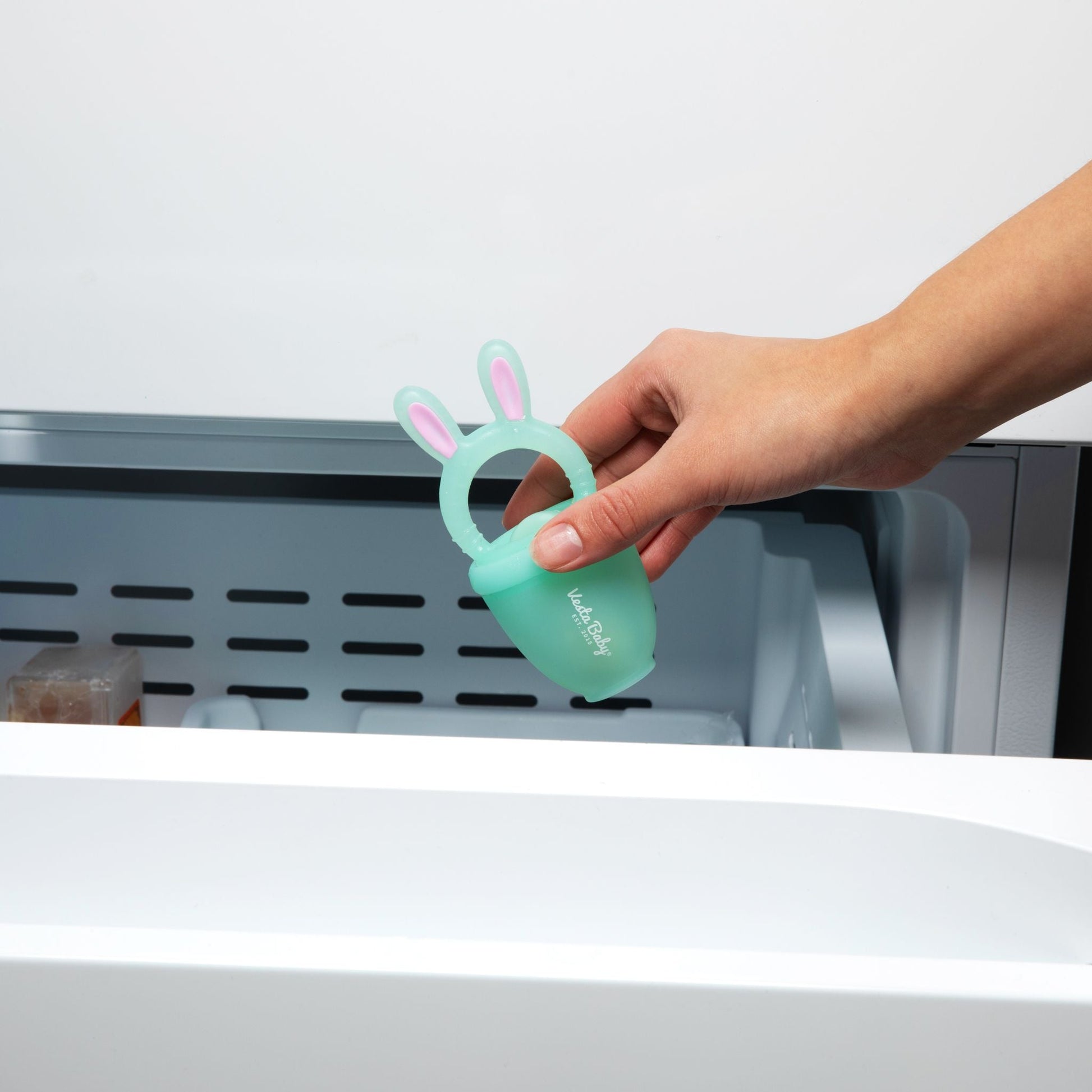- VERSATILE AND PRACTICAL: This set is an essential companion during your baby's weaning and teething journey. It's not just a durable feeder; it doubles as a teether. Simply flip it over, and your baby can utilize the cute bunny-shaped handle for soothing teething discomfort. By gnawing and nibbling on the rabbit's ears, your little one can find relief through gentle gum massage. Attach the feeder to a pacifier leash, clip, or holder, ensuring the baby fruit feeder is always within easy reach.